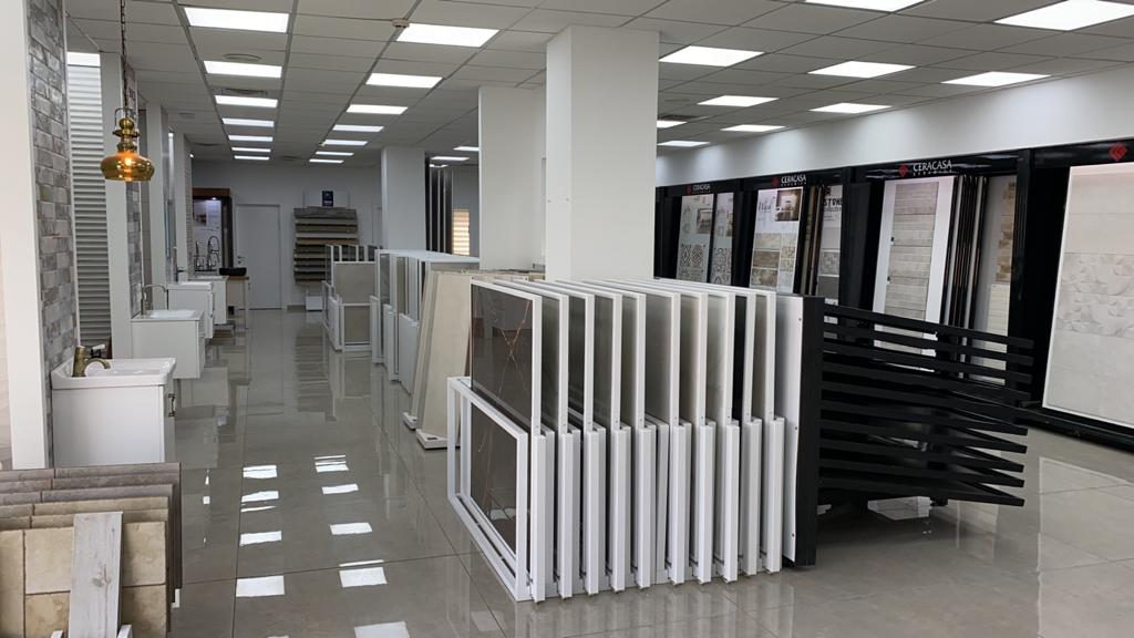 בבניין אולם תצוגה מהגדולים בארץ (550 מ"ר), ובו מגוון עצום של מרצפות קרמיקה ואריחים בעלי מרקמים שונים, מבחר מרהיב של ברזים, אמבטיות וג'קוזי וכן סוגים רבים של דלתות.